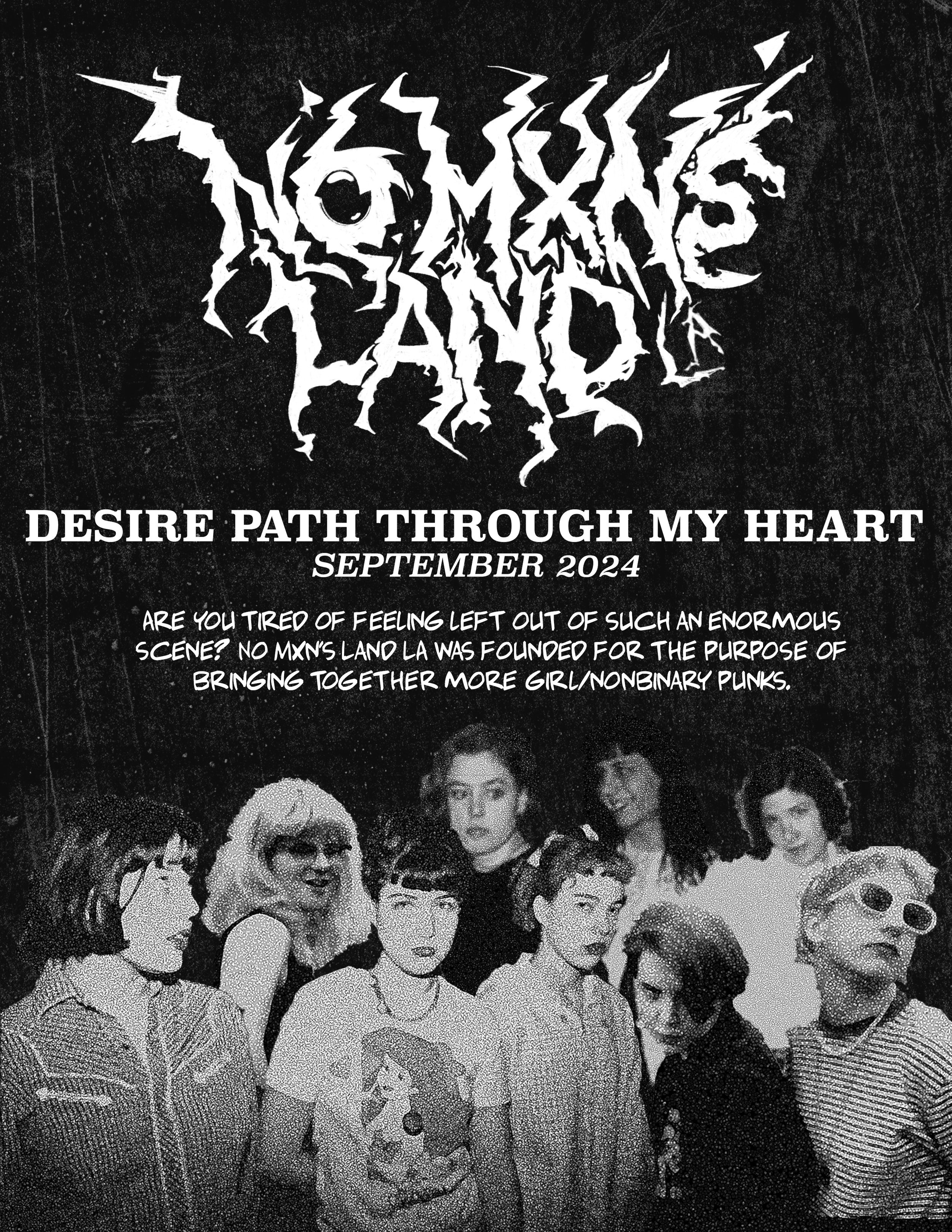 No Mxn’s Land LA is a local LA riot grrrl zine which covers the latest (and coolest) girl/nonbinary punk bands, feminist literature, show recs, politics, and more. My role consists of creating social media posts, show photography and videography, creating graphics, and networking with local promoters, venues, and bands. There are a couple zine drops a year!